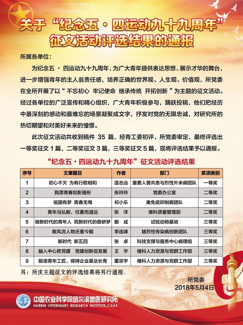 關(guān)于“紀(jì)念五?四運(yùn)動(dòng)九十九周年”征文活動(dòng)評(píng)選結(jié)果的通報(bào)