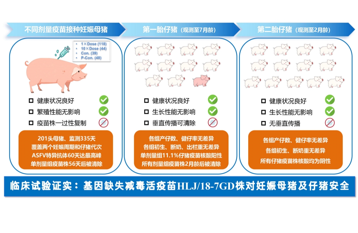 臨床試驗研究證實,非洲豬瘟基因缺失減毒活疫苗(HLJ/18-7GD株)對妊娠母豬及其仔豬安全