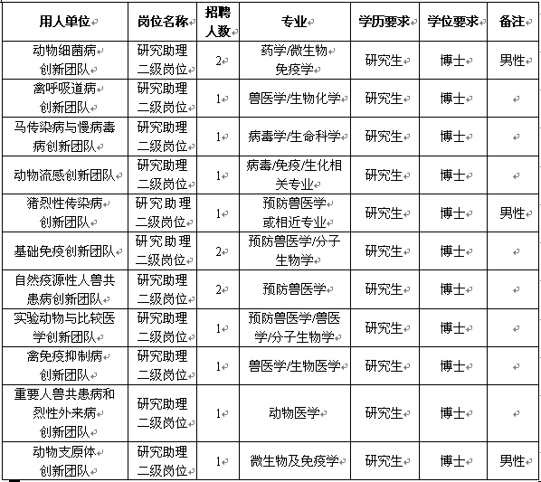 1、遞交求職簡歷并填寫《應(yīng)聘中國農(nóng)業(yè)科學(xué)院哈爾濱獸醫(yī)研究所崗位人員登記表》一份;2、專家推薦信2封(其中必有博士導(dǎo)師1封);3、成績單復(fù)印件;4、國家外語等級證書復(fù)印件;5、其它獲獎證書及證明材料;6、需要發(fā)表或正式接受SCI文章1篇以上(單篇影響因子在1.5以上);7、不符合上述條件及材料不全者不予登記。以上材料電子版壓縮后以本人姓名為文件名發(fā)至以下郵箱。