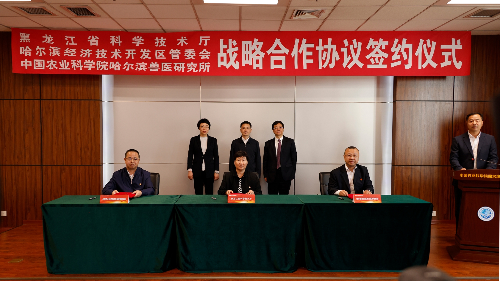 為進(jìn)一步貫徹落實省委省政府發(fā)展生物經(jīng)濟(jì)決策部署,全力打造包括生物經(jīng)濟(jì)在內(nèi)的經(jīng)濟(jì)發(fā)展新引擎,助力龍江全面振興全方位振興,9月20日上午,黑龍江省科技廳、哈爾濱經(jīng)濟(jì)技術(shù)開發(fā)區(qū)管理委員會、中國農(nóng)業(yè)科學(xué)院哈爾濱獸醫(yī)研究所(哈獸研)三方簽署戰(zhàn)略合作框架協(xié)議。