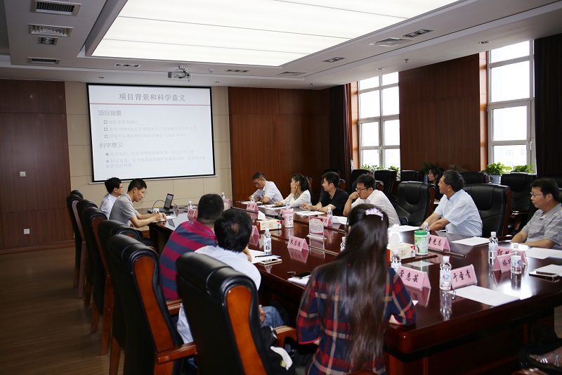 項(xiàng)目主持人哈爾濱獸醫(yī)研究所所長(zhǎng)步志高研究員從重大動(dòng)物疫病新型標(biāo)記疫苗創(chuàng)制的重要意義入手,對(duì)重大選題研究?jī)?nèi)容、研究目標(biāo)、研究進(jìn)展、實(shí)施方案、實(shí)施機(jī)制、經(jīng)費(fèi)執(zhí)行要求等內(nèi)容進(jìn)行了詳細(xì)的匯報(bào)。熊明民副局長(zhǎng)強(qiáng)調(diào)了院重大產(chǎn)出科研選題的立項(xiàng)背景和重要性,并對(duì)項(xiàng)目的組織實(shí)施提出具體的指導(dǎo)意見,強(qiáng)調(diào)了項(xiàng)目執(zhí)行過程中要堅(jiān)持產(chǎn)出導(dǎo)向,希望項(xiàng)目成員認(rèn)真完成考核指標(biāo),產(chǎn)生重大標(biāo)志性成果。