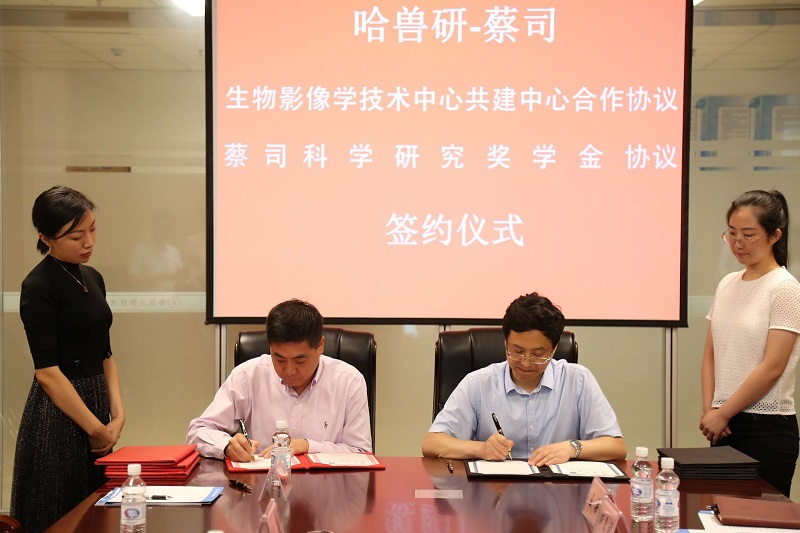 8月13日下午,我所與卡爾蔡司(上海)管理有限公司在綜合科研樓3035會議室隆重舉行了“哈獸研-蔡司生物影像學(xué)技術(shù)中心”共建合作協(xié)議暨“蔡司科學(xué)研究獎學(xué)金”合作協(xié)議的簽約儀式。
