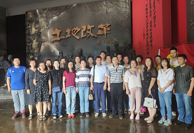 黨員們先參觀了《暴風驟雨》紀念館,該館是元寶村為紀念土地改革,繼承革命傳統(tǒng),發(fā)展旅游產(chǎn)業(yè)而興建的村辦紀念館。講解員介紹了元寶村如何從窮得叮鐺響的“光腚屯”,變成了遠近聞名的“億元村”的奮斗歷程。在紀念館中黨員們重溫了入黨誓詞。