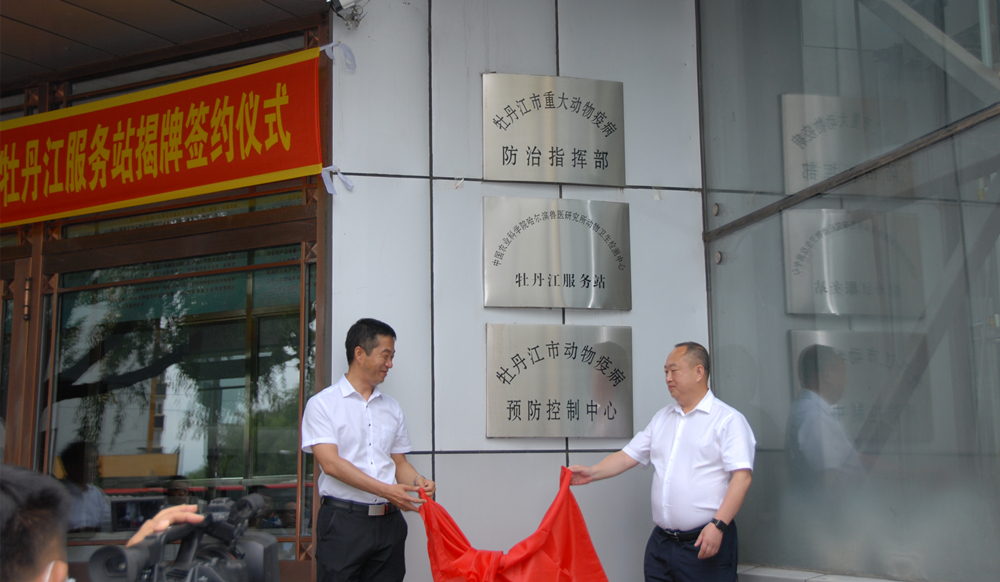 2020年,中國農(nóng)業(yè)科學院哈爾濱獸醫(yī)研究所與黑龍江省牡丹江市人民政府簽訂戰(zhàn)略合作協(xié)議,雙方確定了首批5項具體合作項目,包含豬病綜合防控、禽病綜合防控、牛病綜合防控、研究生實踐訓練和疫病檢測培訓合作。本次揭牌儀式拉開了研究所與牡丹江市畜牧獸醫(yī)行業(yè)合作序幕,有利于進一步提升牡丹江養(yǎng)殖企業(yè)科學養(yǎng)殖、疫病防控能力,提升牡丹江動物疫病防控和監(jiān)測技術(shù)水平。