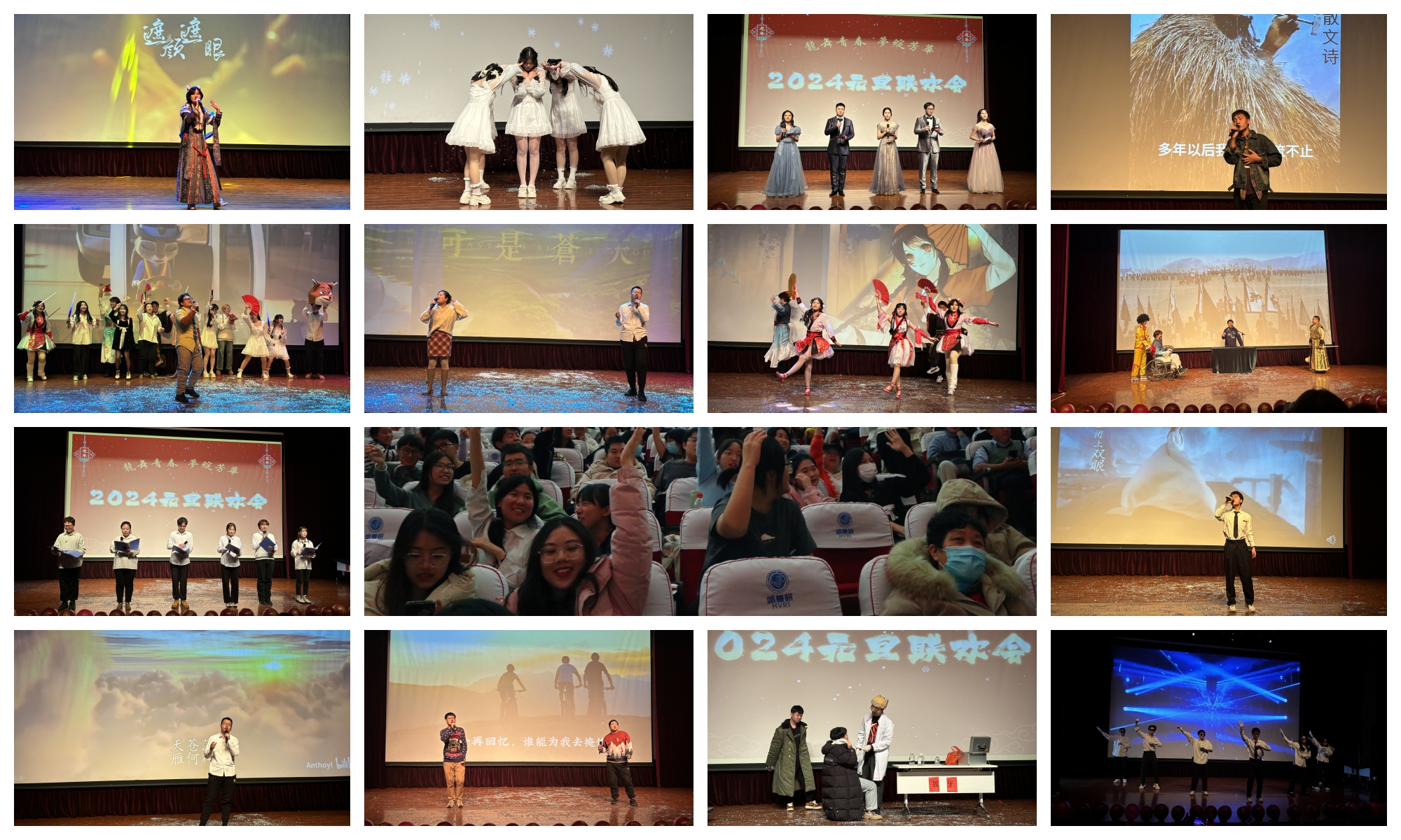 聯(lián)歡會在活力四射的開場舞《科目三》中拉開帷幕。歌曲《眉南邊》、《紫》、舞蹈《冬日》、《寄明月》讓觀眾感受到中華優(yōu)秀傳統(tǒng)文化的源遠(yuǎn)流長;評書《武鄉(xiāng)侯舌戰(zhàn)王朗》、相聲《神話》,影視經(jīng)典之辯與東北“二人轉(zhuǎn)”可謂一方水土一方人,獸研“莎士比亞”和“卓別林”的演出讓觀眾大飽眼福;歌曲《奢香夫人》、《Try Everything》、朗誦《雪 Distance》,展示了獸研學(xué)子朝氣蓬勃、積極進(jìn)取的精神風(fēng)貌;小品《拔牙》結(jié)合各地方言和獸醫(yī)學(xué)院的日常生活,以幽默搞笑的方式,提醒同學(xué)們注重提升辨別和防范詐騙的能力;歌曲《鴻雁》、《父親寫的散文詩》表達(dá)了師生們對故土親人的思念,以及盤繞在心尖的鄉(xiāng)愁與父愛;歌曲《灰色軌跡》、《海闊天空》追憶搖滾樂隊beyond,經(jīng)典難以忘懷的信仰與力量。