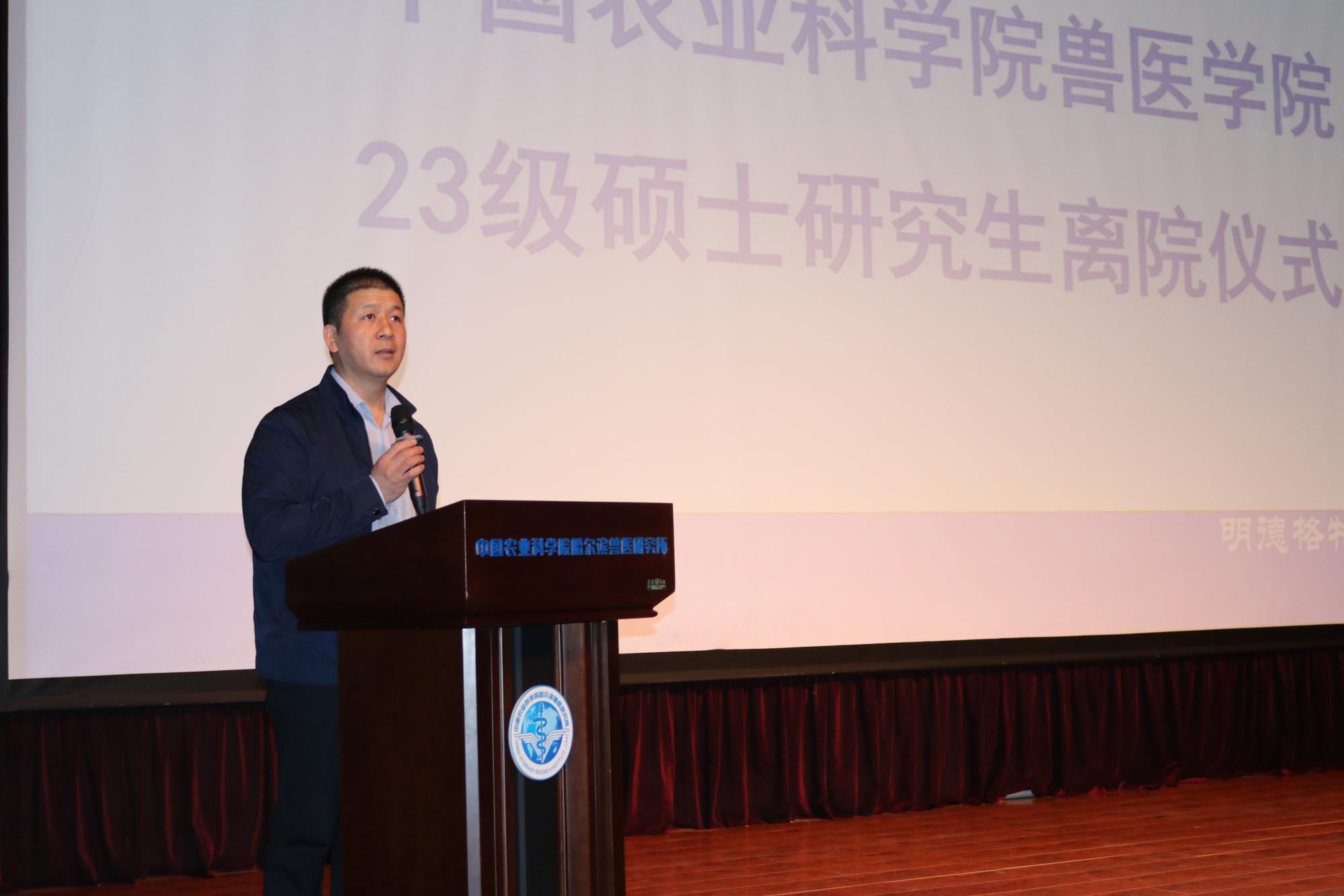 與君同舟渡,達岸各自歸。初夏奏響離別的旋律,載著歡歌笑語為獸醫(yī)學院2023級研究生集中學習畫上圓滿句號。5月9日,獸醫(yī)學院在綜合樓舉辦“致青春 致未來”2023級研究生離院儀式。獸醫(yī)學院常務副院長劉益民,獸醫(yī)學院管理老師董梅、郭東春、趙玉輝及2023級全體碩士一年級研究生近200人參加。