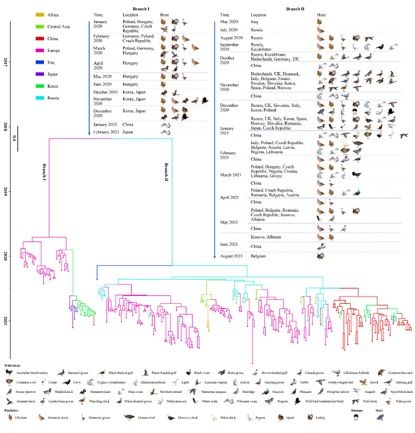 圖為2020年以來(lái)H5N8亞型禽流感病毒在全球時(shí)空傳播的特點(diǎn)分析。(受訪單位供圖)