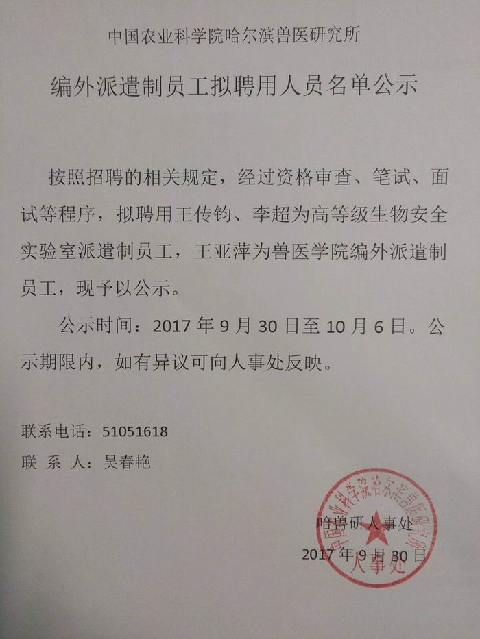 編外派遣制員工擬聘用人員名單公示