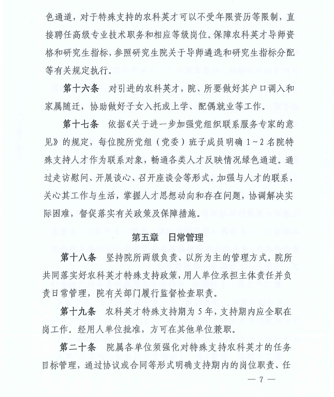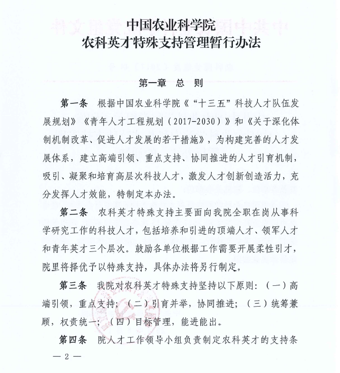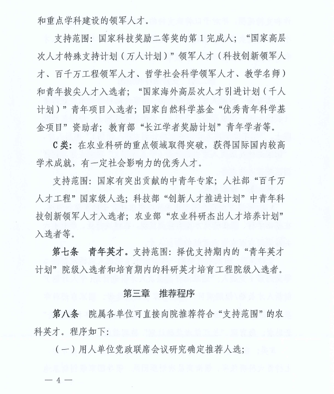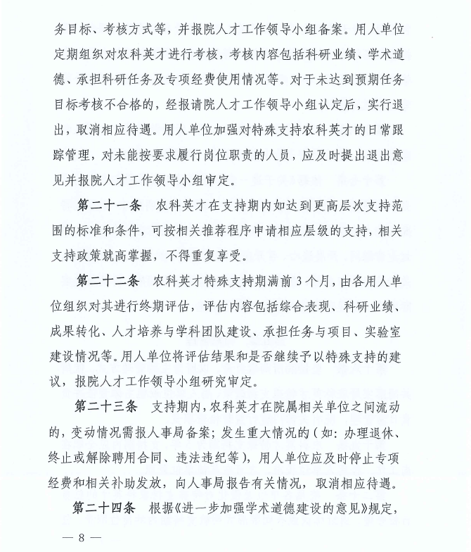 中共中國(guó)農(nóng)業(yè)科學(xué)院黨組關(guān)于印發(fā)《中國(guó)農(nóng)業(yè)科學(xué)院農(nóng)科英才特殊支持管理暫行辦法》的通知