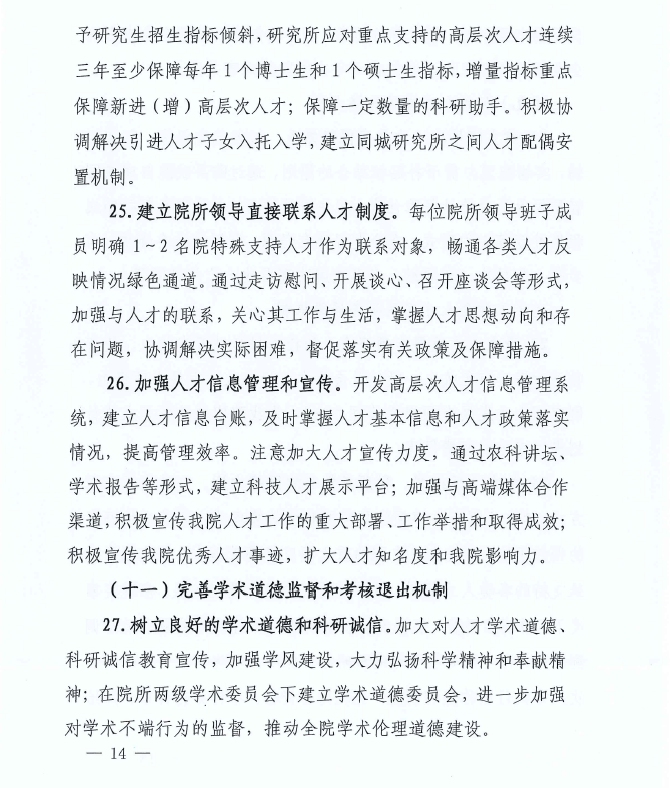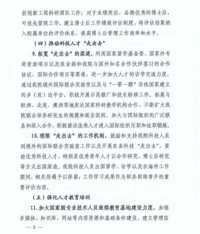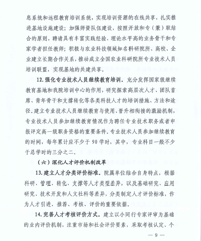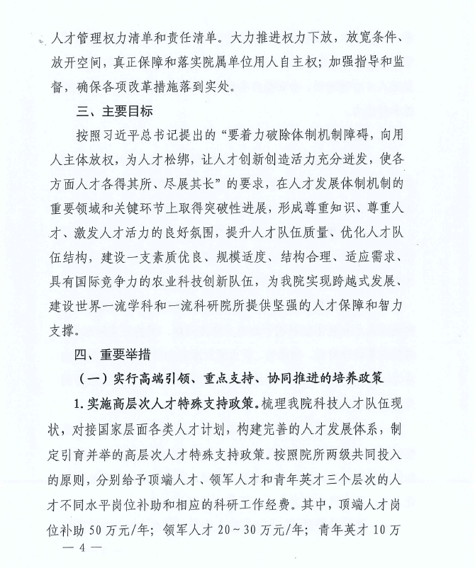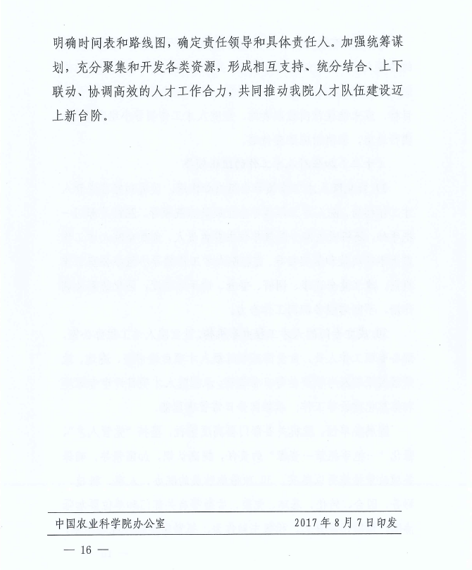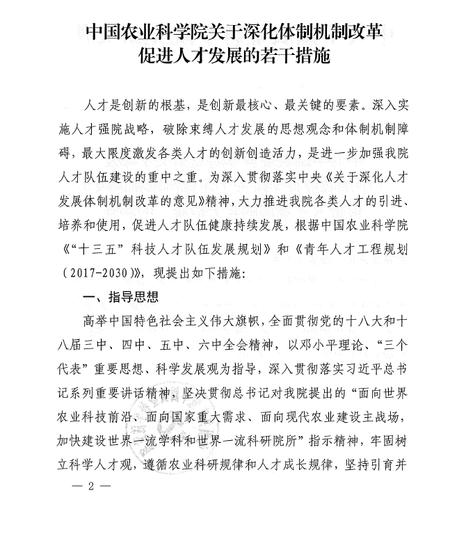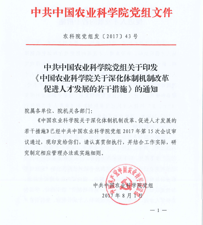 中共中國農(nóng)業(yè)科學院黨組關(guān)于印發(fā)《中國農(nóng)業(yè)科學院關(guān)于深化體制機制改革 促進人才發(fā)展的若干措施》的通知