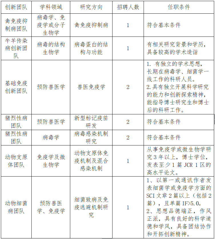 中國農(nóng)業(yè)科學(xué)院哈爾濱獸醫(yī)研究所博士后招收公告
