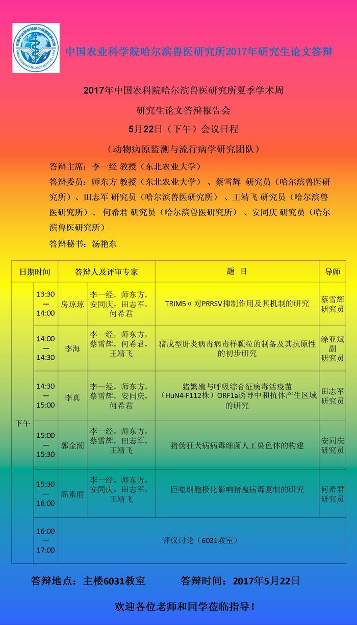 馬傳染病和慢病毒病和自然疫源性人獸共患病團(tuán)隊(duì)研究生論文答辯報(bào)告會(huì)