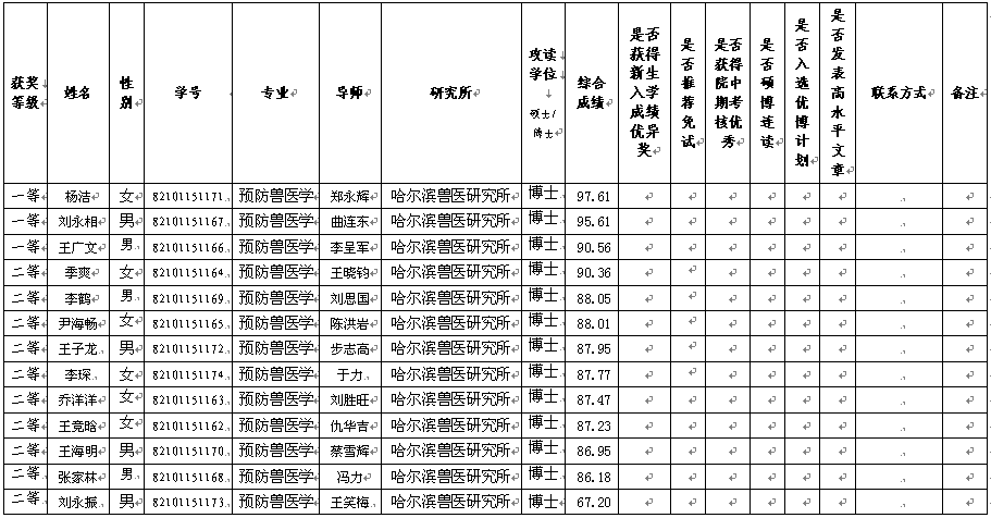 中國農(nóng)業(yè)科學(xué)院研究生學(xué)業(yè)獎學(xué)金獲獎公示(2015級博士)