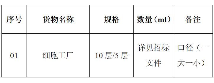 項目名稱:細胞工廠招標采購與服務