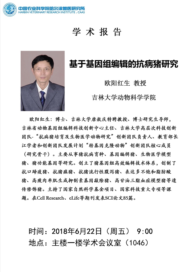 歐陽紅生 基于基因組編輯的抗病豬研究