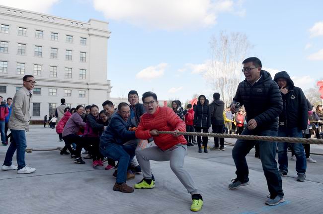 本次趣味運動會共設(shè)集體拔河、集體跳繩、團(tuán)體競技趣味游戲等3個集體項目,單人跳繩和踢毽子等2個個人項目。在集體拔河的賽場上每個參賽隊員都不甘示弱,竭盡全力,觀賽的啦啦隊有力的口號、嘹亮的加油聲給這個早來的冬日增添了激情和溫暖。集體跳繩的賽場上隊員們互相鼓勵,配合默契,接連不斷地跳過高揚的繩索。個人項目的競爭更加激烈,選手個個身手敏捷,動作輕盈,每個參賽者都完美的展現(xiàn)出自己的運動天賦,展示出不凡的實力,最高紀(jì)錄不斷地被刷新。最后進(jìn)行的團(tuán)體競技趣味運動讓所有隊伍都充滿了期待。綁腿跑,背夾球,過河搭橋三個小項目,大家都躍躍欲試,各個隊伍合理安排戰(zhàn)術(shù),在比賽中無縫銜接,都讓這個項目充滿了懸念。整場比賽充滿了掌聲、笑聲和吶喊聲,大家在一項項激烈的比賽中,體現(xiàn)出團(tuán)結(jié)協(xié)作的力量,感受到和諧愉悅的氛圍。