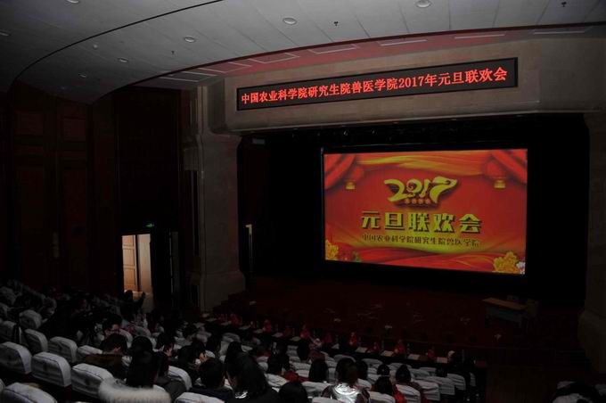 2016年12月30日下午,中國農(nóng)業(yè)科學院研究生院獸醫(yī)學院“不忘初心 共筑夢想”2017年元旦聯(lián)歡會在哈爾濱獸醫(yī)研究所學術報告廳舉行。哈獸研副所長王笑梅、副所長趙國輝、副書記夏長友、哈爾濱維科生物技術開發(fā)公司董事長兼總經(jīng)理付朝陽、中國農(nóng)業(yè)科學院研究生院獸醫(yī)學院常務副院長劉益民、副院長高友蘭、李曦以及哈獸研各職能部門、各團隊的領導和老師與全體師生共迎新年。