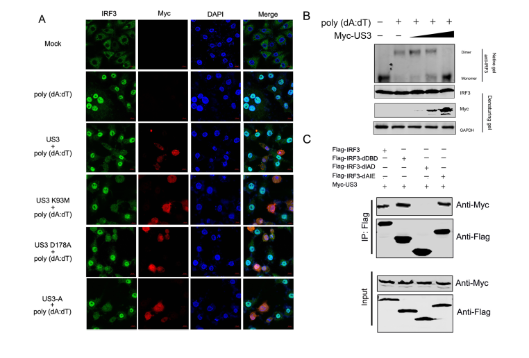 近日,我所自然疫源性人獸共患病團隊在《病毒學(xué)雜志(Journal of Virology)》在線發(fā)表了題為”FHV-1 US3 blocks type I IFN signal pathway by targeting IRF3 dimerization in a kinase-independent manner”的研究論文(論文鏈接http://jvi.asm.org/content/early/2018/03/30/JVI.00047-18.abstract)。