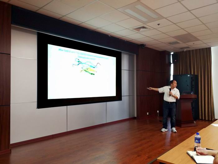 7月10日上午,應(yīng)中國(guó)農(nóng)業(yè)科學(xué)院哈爾濱獸醫(yī)研究所馮力研究員的邀請(qǐng),美國(guó)康奈爾大學(xué)Yung-Fu Chang教授作了題為《鉤端螺旋體免疫球蛋白樣蛋白LigB與宿主細(xì)胞外基質(zhì)相互作用的分子特征》的精彩報(bào)告。報(bào)告會(huì)由豬消化道傳染病創(chuàng)新團(tuán)隊(duì)首席科學(xué)家馮力研究員主持,全所科研人員及研究生參加了本次報(bào)告。