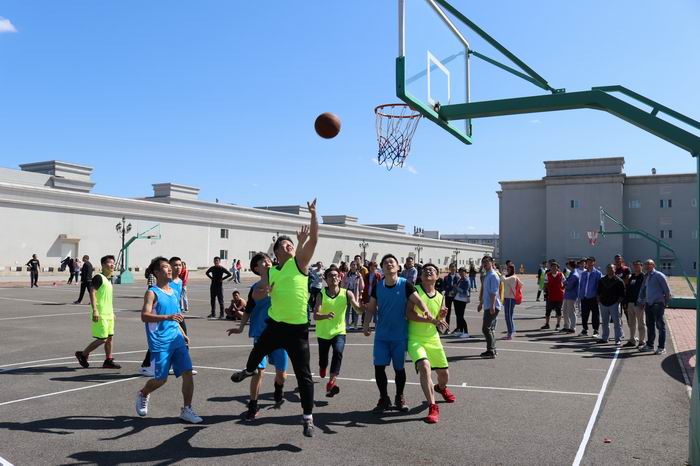 賽場上,選手們揮灑汗水,斗志昂揚, 每一次的搶籃板、投籃、三分球都會引來場下喝彩聲;賽場下,啦啦隊員吶喊助威不甘示弱,每一聲的加油都是發(fā)自內心鼓舞人心的。比賽是激烈的,充滿著對勝利的渴望;比賽也是溫情的,場上場下師生心意相連。