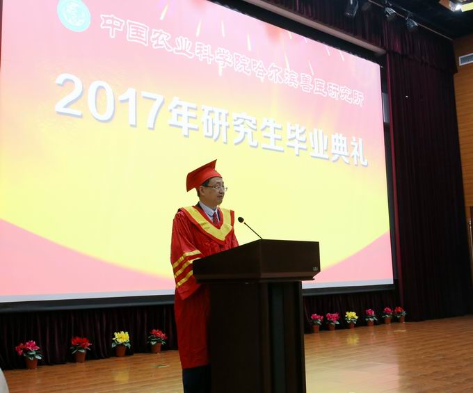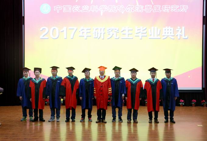 6月2日,哈獸研2017年度研究生畢業(yè)典禮在科研綜合樓報(bào)告廳順利舉行。53位碩士、6位博士畢業(yè)生,所領(lǐng)導(dǎo)步志高、張逐陳、趙國輝、夏長友,廣東溫氏大華農(nóng)王阿明副總經(jīng)理、浙江詩華諾倍威張永志經(jīng)理、哈爾濱維科生物技術(shù)開發(fā)公司葉喜永副總經(jīng)理和全所師生、家長代表參加了畢業(yè)典禮。