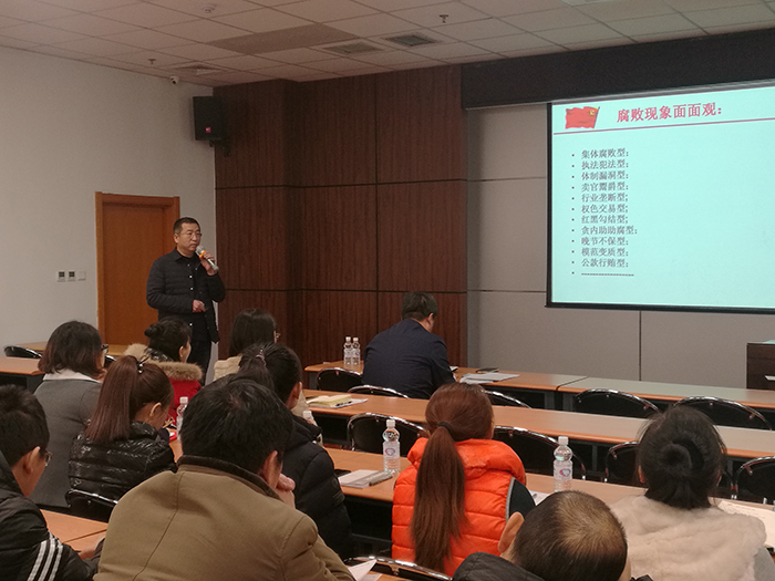培訓(xùn)會(huì)上,張曉鵬做了題為《腐敗的成因及防范措施》的報(bào)告,他用大量的事實(shí)和案例,剖析了當(dāng)前反腐斗爭(zhēng)的總體形勢(shì)和政府采購(gòu)、科研經(jīng)費(fèi)使用、基建、招投標(biāo)等領(lǐng)域腐敗易發(fā)、多發(fā)的環(huán)節(jié),并總結(jié)歸納了“手、眼、身、法、步”廉潔從政5字語,提醒大家注意提高自身修養(yǎng),敬畏法度、敬畏規(guī)矩,遠(yuǎn)離小圈子、遠(yuǎn)離低級(jí)趣味,提高拒腐防變的能力。