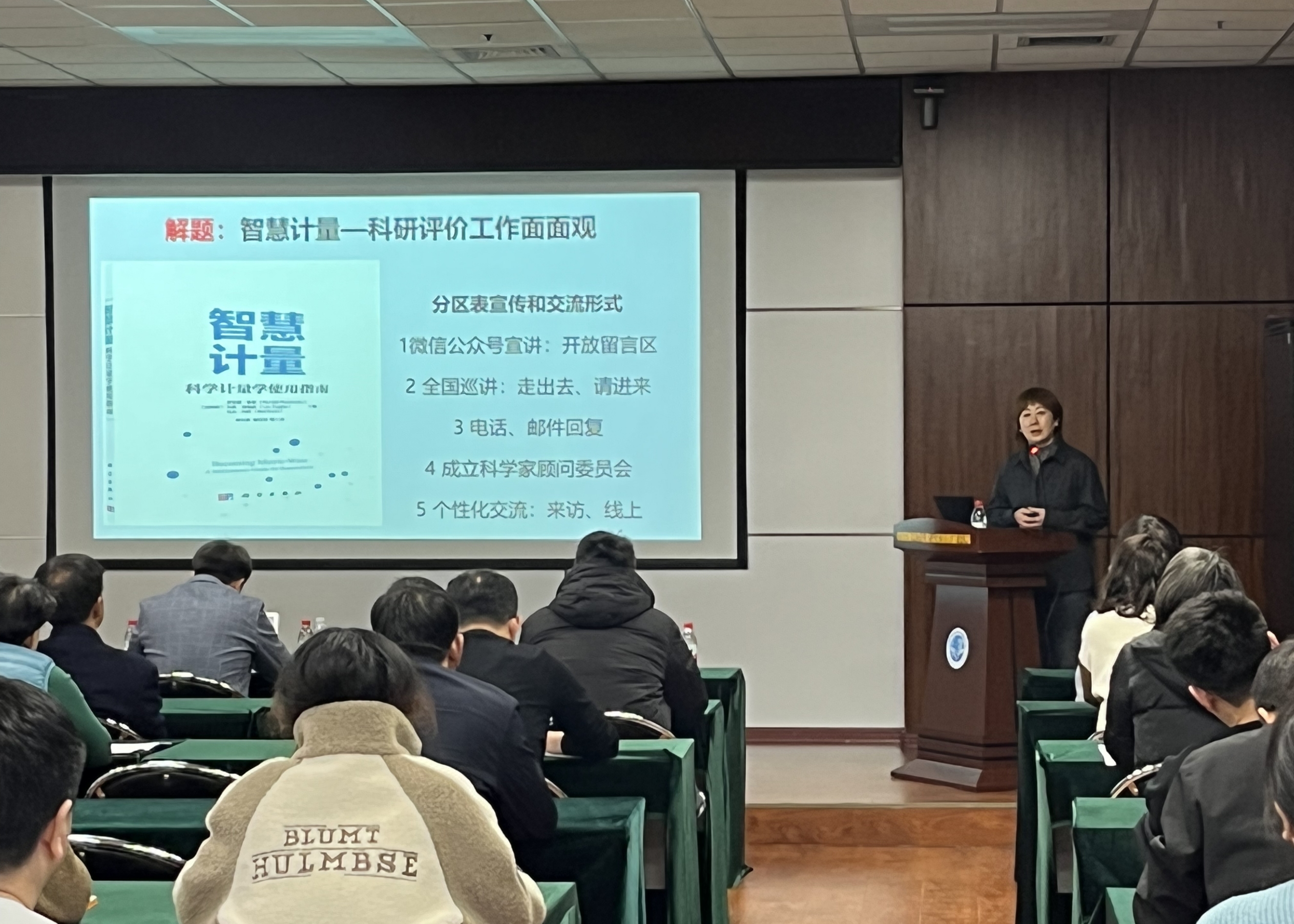 楊立英研究員在科研評(píng)價(jià)領(lǐng)域取得了豐碩的研究成果,具有豐富的實(shí)踐經(jīng)驗(yàn),她及團(tuán)隊(duì)建設(shè)的《中國科學(xué)院文獻(xiàn)情報(bào)中心期刊分區(qū)表》、《國際學(xué)術(shù)期刊預(yù)警名單》等評(píng)價(jià)標(biāo)準(zhǔn)具有廣泛的國際影響力,推動(dòng)了中國學(xué)術(shù)評(píng)價(jià)標(biāo)準(zhǔn)的國際話語權(quán)提升。報(bào)告會(huì)由副所長李呈軍主持,研究所職工及學(xué)生共80余人參加了此次學(xué)術(shù)報(bào)告活動(dòng)。