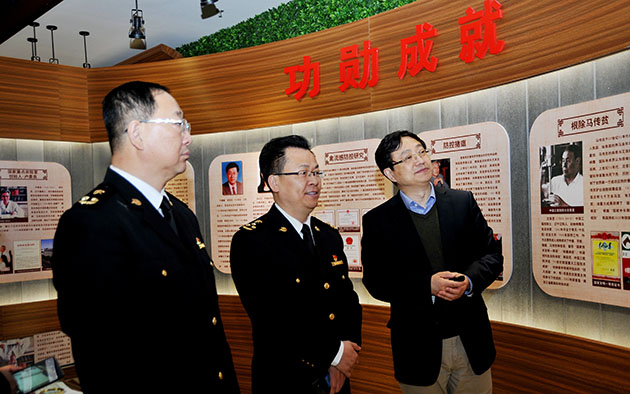盧厚林首先參觀了國家動物疾病防控高級別生物安全實驗室,通過中央控制室視頻系統(tǒng)了解非洲豬瘟疫苗研究進(jìn)展。他指出,該實驗室作為國之重器,提高了我國在生物安全領(lǐng)域的話語權(quán),補(bǔ)齊了硬件設(shè)施落后的短板,為烈性動物傳染病、人畜共患病防控及國家公共衛(wèi)生安全提供重要支撐保障。隨后來到綜合科研樓,先后察看了研究所規(guī)劃沙盤、所史展覽室及國家禽流感參考實驗室,充分了解研究所新區(qū)規(guī)劃及建設(shè)進(jìn)展情況,所長步志高全面介紹了研究所的發(fā)展歷史及輝煌成就。盧厚林指出,哈獸研作為中國農(nóng)業(yè)科研國家隊,不僅取得了杰出的科技成果,培育了優(yōu)秀的創(chuàng)新團(tuán)隊,還在馬傳貧、SARS、禽流感等重大動物疫病防控方面發(fā)揮了關(guān)鍵作用。未來,還將在非洲豬瘟防控上繼續(xù)貢獻(xiàn)科技力量。