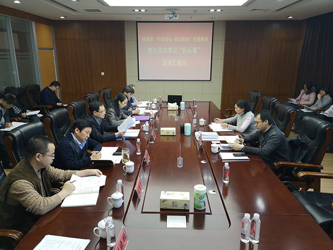 12月3日,院“不忘初心、牢記使命”主題教育“回頭看”督導(dǎo)檢查第五組組長李建萍、組員鄭釗光對我所主題教育整改落實“回頭看”工作進行督導(dǎo)檢查。所長步志高主持匯報會,黨委書記王笑梅作自查情況匯報。黨委委員、各總支和支部書記、整改落實工作部門負責(zé)人參加會議。