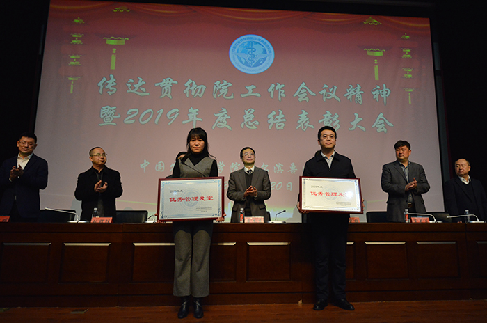 會上,通報了2019年度獲得各方表彰的集體和個人名單,表彰了2019年度科技成果獎,2019年度文明處室標(biāo)兵、文明班組標(biāo)兵和文明職工標(biāo)兵及2019年度單項(xiàng)獎勵,所黨政班子為獲得獎項(xiàng)的集體和個人頒發(fā)了獎牌和榮譽(yù)證書。