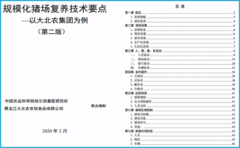 去年9月,由中國(guó)農(nóng)科院哈爾濱獸醫(yī)研究所仇華吉研究員牽頭完成的《規(guī)?;i場(chǎng)復(fù)養(yǎng)技術(shù)要點(diǎn)》已在黑龍江、天津、山東、江蘇、湖北等地區(qū)推廣,服務(wù)的企業(yè)包括大北農(nóng)、豬世紀(jì)、上海農(nóng)場(chǎng)等。