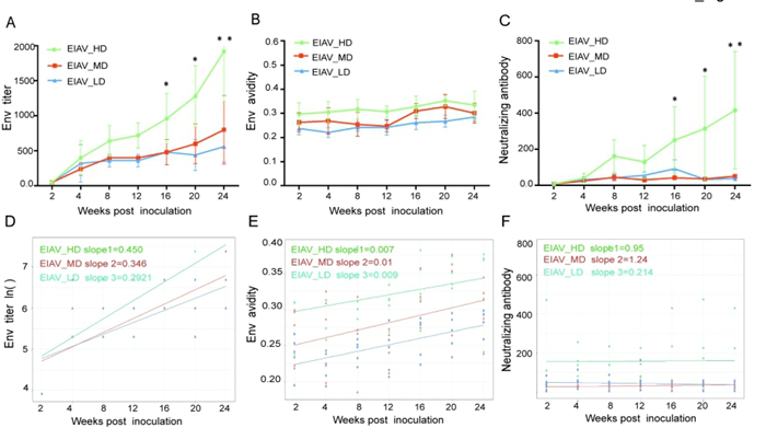 近日,中國農(nóng)業(yè)科學(xué)院哈爾濱獸醫(yī)研究所獸醫(yī)生物技術(shù)國家重點實驗室王曉鈞團隊,首次證實了馬傳染性貧血病毒(EIAV)病毒囊膜蛋白(env)的多樣性組成是馬傳貧病毒弱毒疫苗能夠誘導(dǎo)免疫保護的關(guān)鍵因素。相關(guān)研究成果以“Env diversity-dependent protection of the attenuated equine infectious anemia virus vaccine ”為題于2020年6月11日發(fā)表在國際病原學(xué)專業(yè)學(xué)術(shù)期刊《新發(fā)微生物與感染(Emerging Microbes & Infections)》。