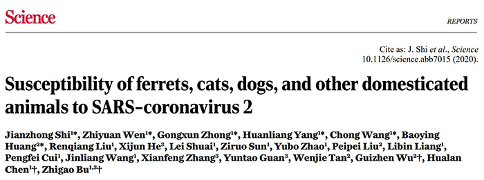 自2013年以來(lái),Altmetric對(duì)全球每年發(fā)表論文的關(guān)注度進(jìn)行綜合評(píng)估,并公布100篇最受關(guān)注的文章榜單 “Altmetric Top 100”。2020年“Altmetric Top 100”日前揭曉,中國(guó)農(nóng)業(yè)科學(xué)院哈爾濱獸醫(yī)研究所步志高、陳化蘭團(tuán)隊(duì)和中國(guó)疾病預(yù)防控制中心病毒病預(yù)防控制所武桂珍團(tuán)隊(duì)發(fā)表的論文“Susceptibility of ferrets, cats, dogs, and other domesticated animals to SARS-coronavirus 2” (Science, DOI:10.1126/science.abb7015)排名20,在農(nóng)業(yè)和獸醫(yī)領(lǐng)域排名第1。該研究發(fā)現(xiàn)貓和雪貂對(duì)新冠病毒高度易感,而犬、豬、雞和鴨對(duì)該病毒不易感。該研究成功建立了新型冠狀病毒的動(dòng)物感染模型,為疾病防控以及動(dòng)物管理模式提供了重要的見(jiàn)解。