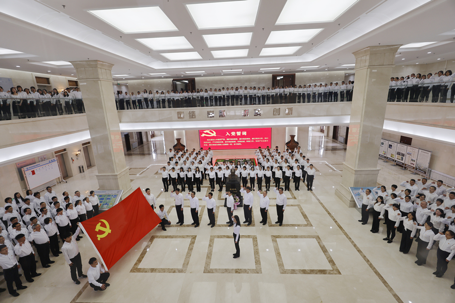 合唱結(jié)束后,黨委書記王笑梅帶領(lǐng)全體黨員同志重溫入黨誓詞。各黨支部也通過形式多樣的黨史學(xué)習(xí)教育,追尋紅色記憶,重溫入黨誓詞,堅(jiān)定初心跟黨走。(攝影/張宇輝 曹石 何聆瑜)