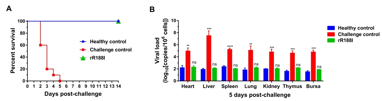 圖2. rR188I重組毒為SPF雞提供完全免疫保護
