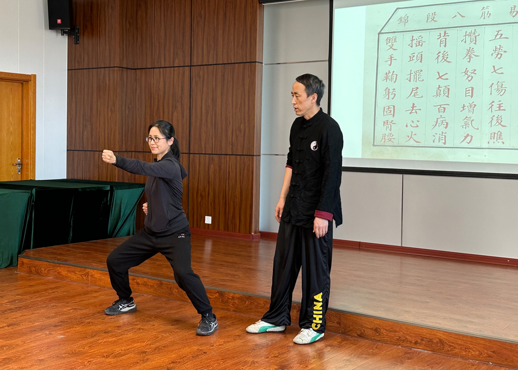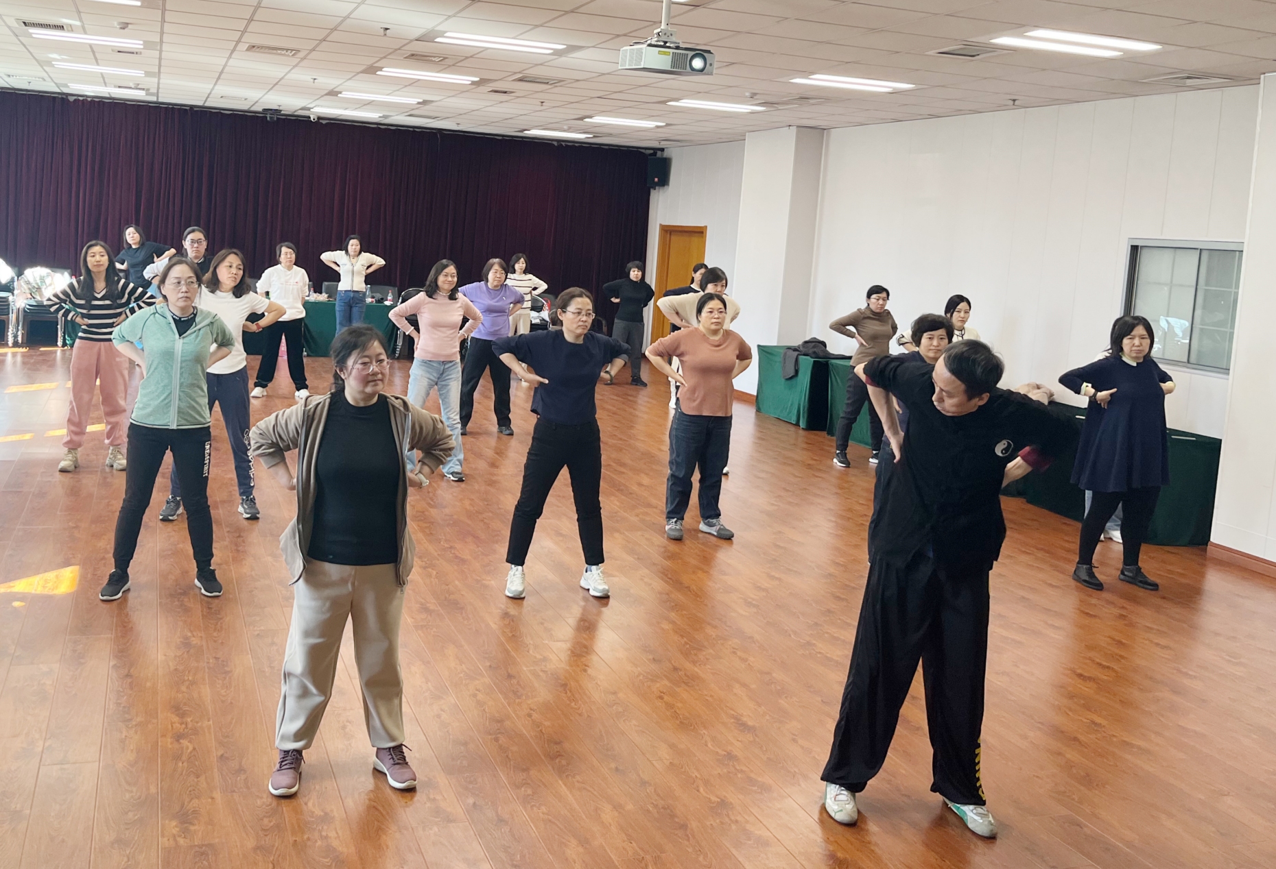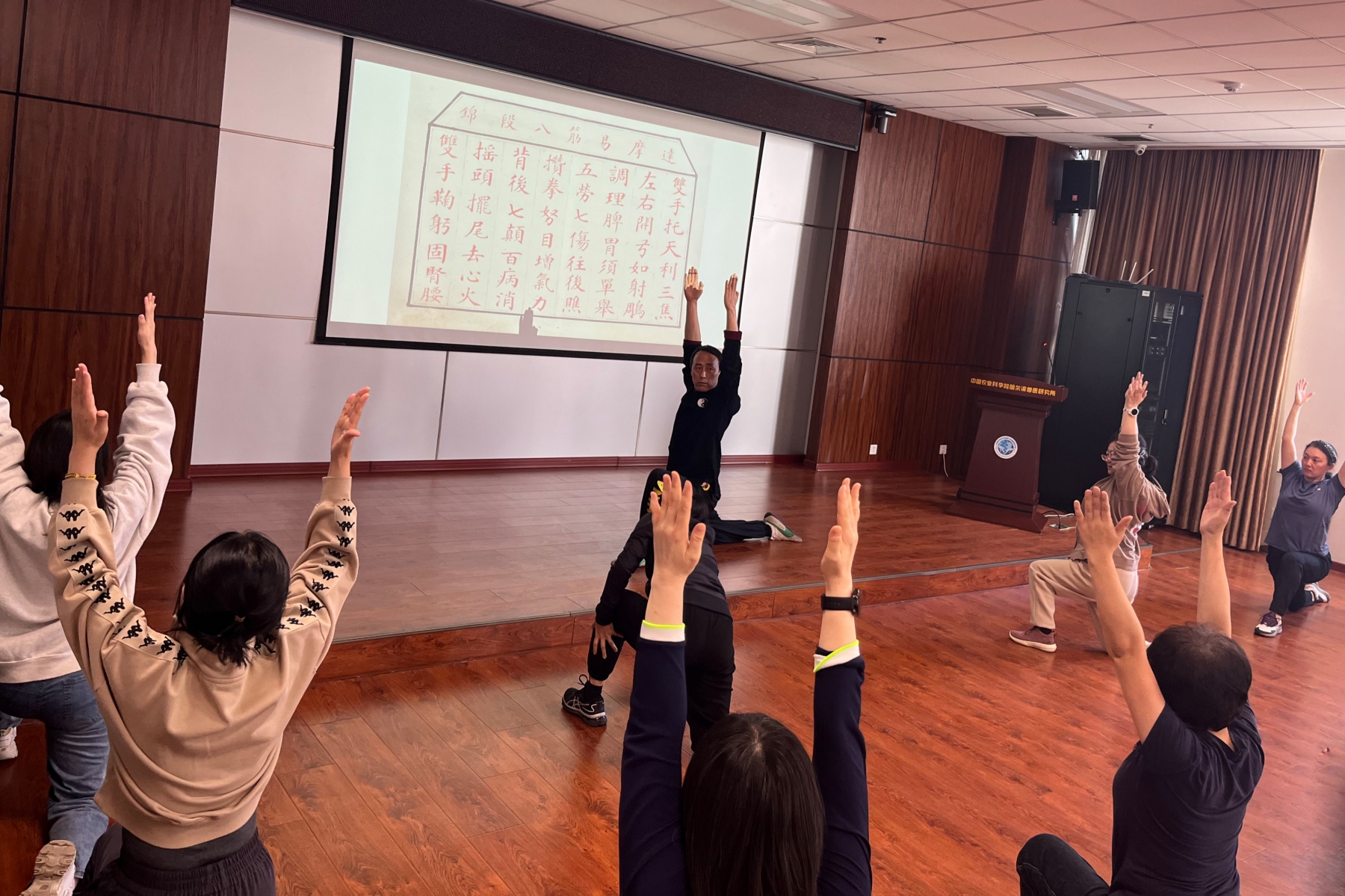 在近3個小時的教學中,李老師將看似簡單的《八段錦》拆解開來,用通俗易懂的語言講解了八段錦的全套動作和口訣。從一招一式到呼吸吐納,從臺上到臺下,把這一段12分鐘的基礎氣功系統(tǒng)植入到每個在場學員的腦海中。通過“動作分解+練習”,女職工們放松心情,全身心的投入到學習中。課程最后,李老師還介紹了一些養(yǎng)生鍛煉的小竅門,并與在健身中有困惑的同事們交流了心得,一節(jié)課下來大家受益匪淺。