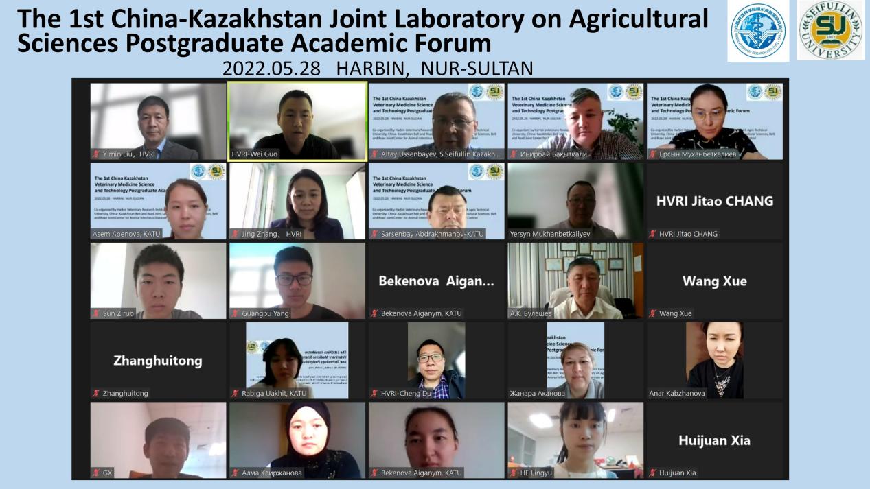 在中國(guó)農(nóng)業(yè)科學(xué)院建院65周年之際,為深入學(xué)習(xí)貫徹習(xí)近平總書(shū)記“一帶一路”倡議和全國(guó)研究生教育會(huì)議精神,促進(jìn)中國(guó)-哈薩克斯坦農(nóng)業(yè)科學(xué)聯(lián)合實(shí)驗(yàn)室(中哈聯(lián)合實(shí)驗(yàn)室)學(xué)術(shù)交流,營(yíng)造合作創(chuàng)新、積極探索的學(xué)術(shù)氛圍,5月28日,哈爾濱獸醫(yī)研究所聯(lián)合賽福林哈薩克農(nóng)業(yè)技術(shù)大學(xué)(賽農(nóng)大)以線上會(huì)議方式舉辦第一屆中哈聯(lián)合實(shí)驗(yàn)室研究生學(xué)術(shù)論壇。