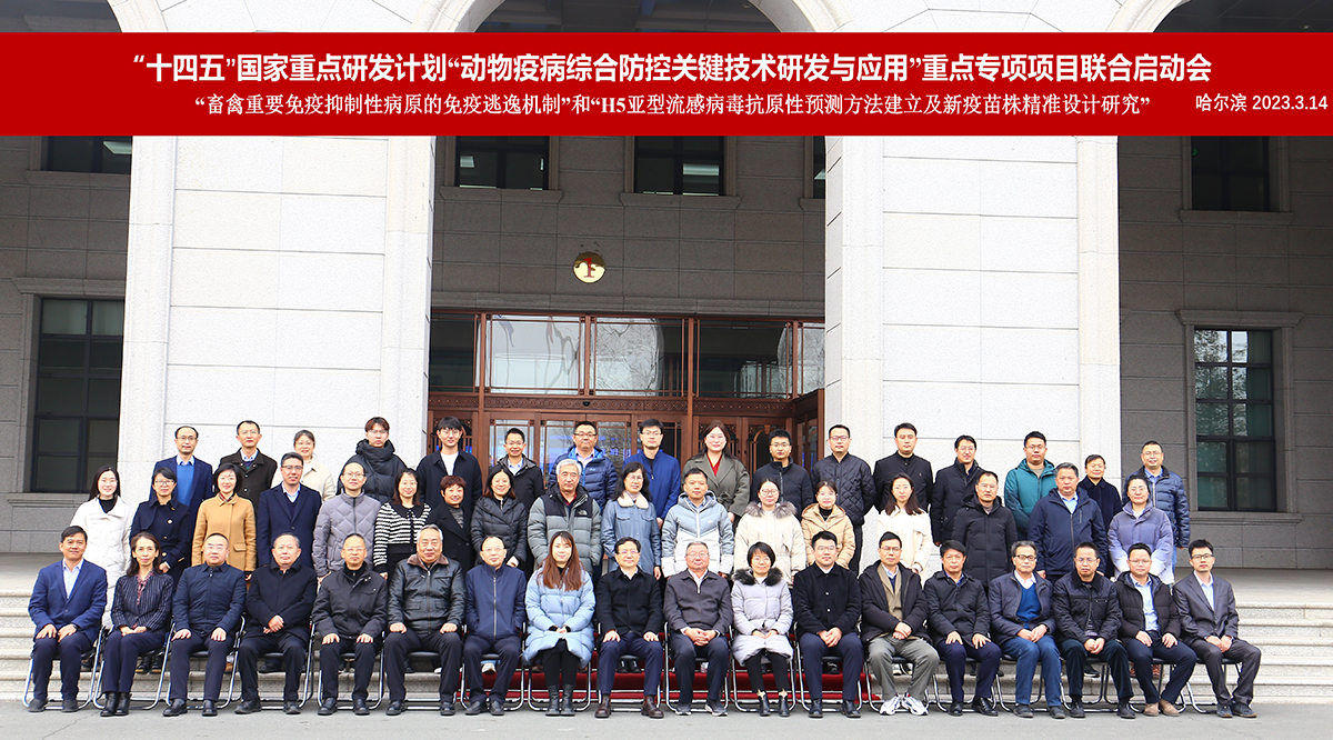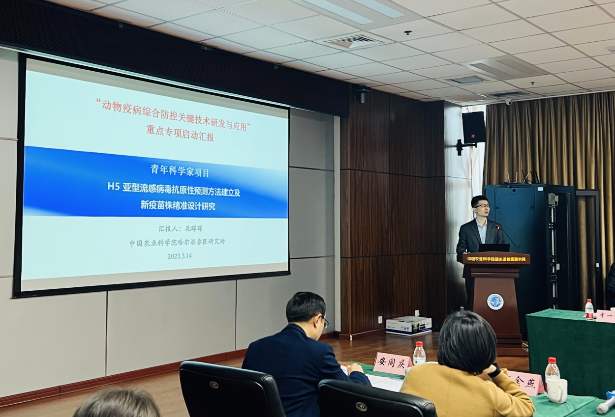 3月14日,由中國農(nóng)業(yè)科學(xué)院哈爾濱獸醫(yī)研究所主持的“十四五”國家重點(diǎn)研發(fā)計劃“動物疫病綜合防控關(guān)鍵技術(shù)研發(fā)與應(yīng)用”重點(diǎn)專項“畜禽重要免疫抑制性病原的免疫逃逸機(jī)制”和青年科學(xué)家項目“H5亞型流感病毒抗原性預(yù)測方法建立及新疫苗株精準(zhǔn)設(shè)計研究”項目聯(lián)合啟動會在哈爾濱召開。農(nóng)業(yè)農(nóng)村部科技發(fā)展中心副主任陳彥賓、項目專員邊曉萌、袁晉,中國農(nóng)科院科技管理局項目與成果處副處長張江麗,研究所所長步志高、副所長劉勝旺,項目咨詢專家和項目骨干等共計60余人參加會議。