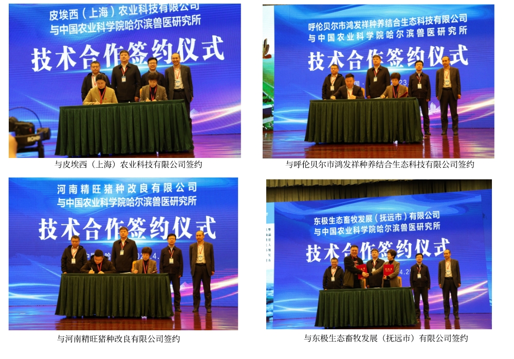 論壇開幕式由哈獸研動物衛(wèi)生檢測中心主任孫建宏主持,哈獸研黨委副書記夏長友致歡迎辭,我省行業(yè)主管部門對本次論壇高度重視,黑龍江省動物疫病預(yù)防與控制中心主任張智杰和黑龍江省飼料工業(yè)協(xié)會會長殷學(xué)中分別代表黑龍江省農(nóng)業(yè)農(nóng)村廳和省飼料工業(yè)協(xié)會致辭。會上,哈獸研動物衛(wèi)生檢測中心分別與皮埃西(上海)農(nóng)業(yè)科技有限公司、呼倫貝爾市鴻發(fā)祥種養(yǎng)結(jié)合生態(tài)科技有限公司、河南精旺豬種改良有限公司、東極生態(tài)畜牧發(fā)展(撫遠(yuǎn)市)有限公司等4家公司簽訂了技術(shù)服務(wù)合作協(xié)議。
