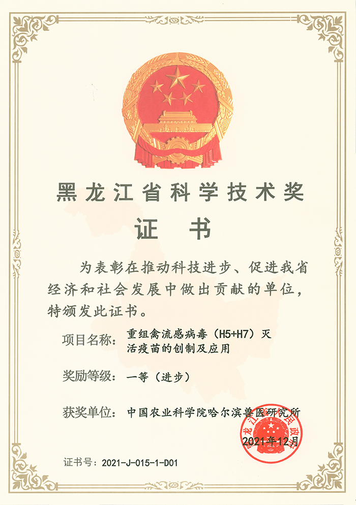 近日,中國(guó)農(nóng)業(yè)科學(xué)院哈爾濱獸醫(yī)研究所動(dòng)物流感基礎(chǔ)與防控研究創(chuàng)新團(tuán)隊(duì)首席科學(xué)家陳化蘭院士領(lǐng)銜的“重組禽流感病毒(H5+H7)滅活疫苗的創(chuàng)制及應(yīng)用”的研究成果獲2021年度黑龍江省科學(xué)技術(shù)進(jìn)步一等獎(jiǎng)。