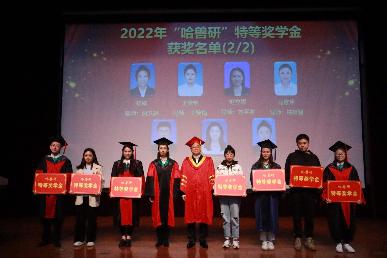 畢業(yè)典禮上,頒發(fā)了“哈獸研”、“金諾診斷”、“大華農(nóng)”和“北大荒牧業(yè)”等獎(jiǎng)助學(xué)金,所領(lǐng)導(dǎo)和企業(yè)代表為73名獲獎(jiǎng)同學(xué)頒發(fā)獎(jiǎng)學(xué)金78萬元。