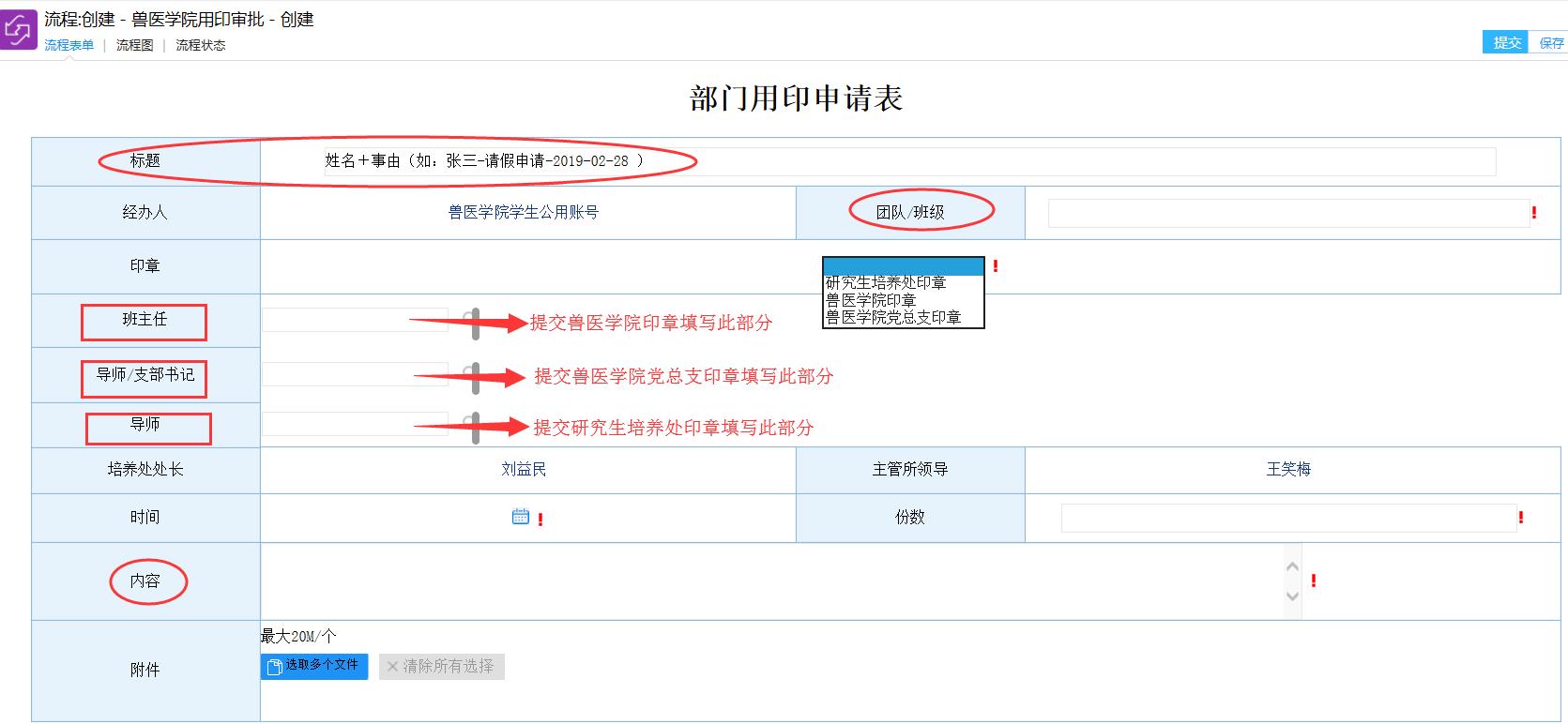 (2)獸醫(yī)學(xué)院印章:填寫團(tuán)隊(duì)/班級(jí),選擇所在班級(jí)班主任;