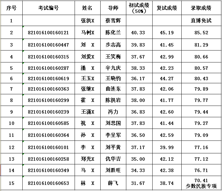 2016年博士研究生復(fù)試擬錄取名單