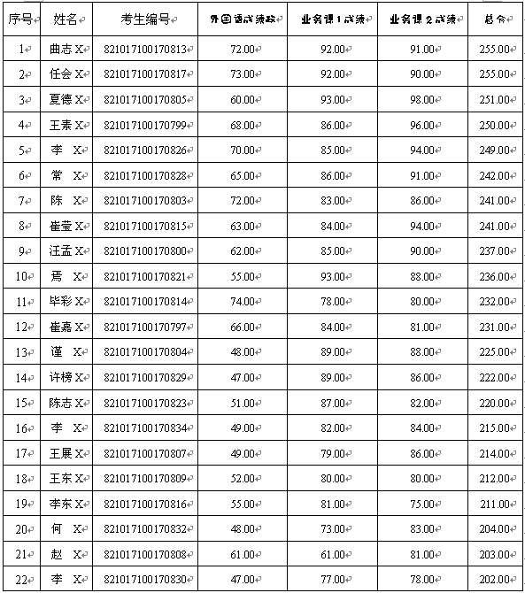 2、初試與復(fù)試成績(jī)所占錄取比例為5:5,復(fù)試結(jié)束后,按初試(占50%)和復(fù)試(占50%)加權(quán)總成績(jī)進(jìn)行名次排序,得出錄取總成績(jī),從高到低依次錄取。